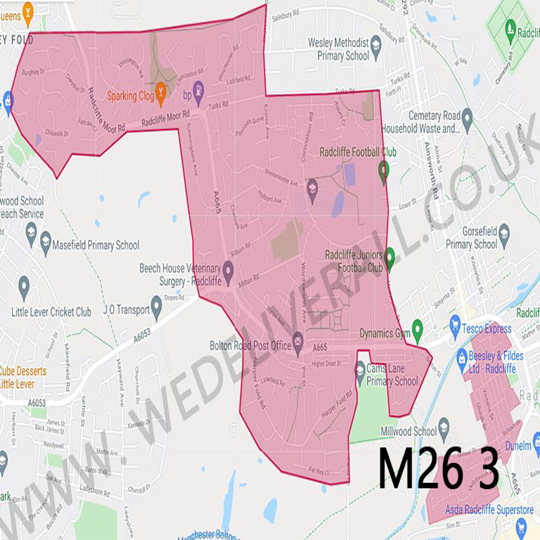 M26 postcode leaflet distribution maps
